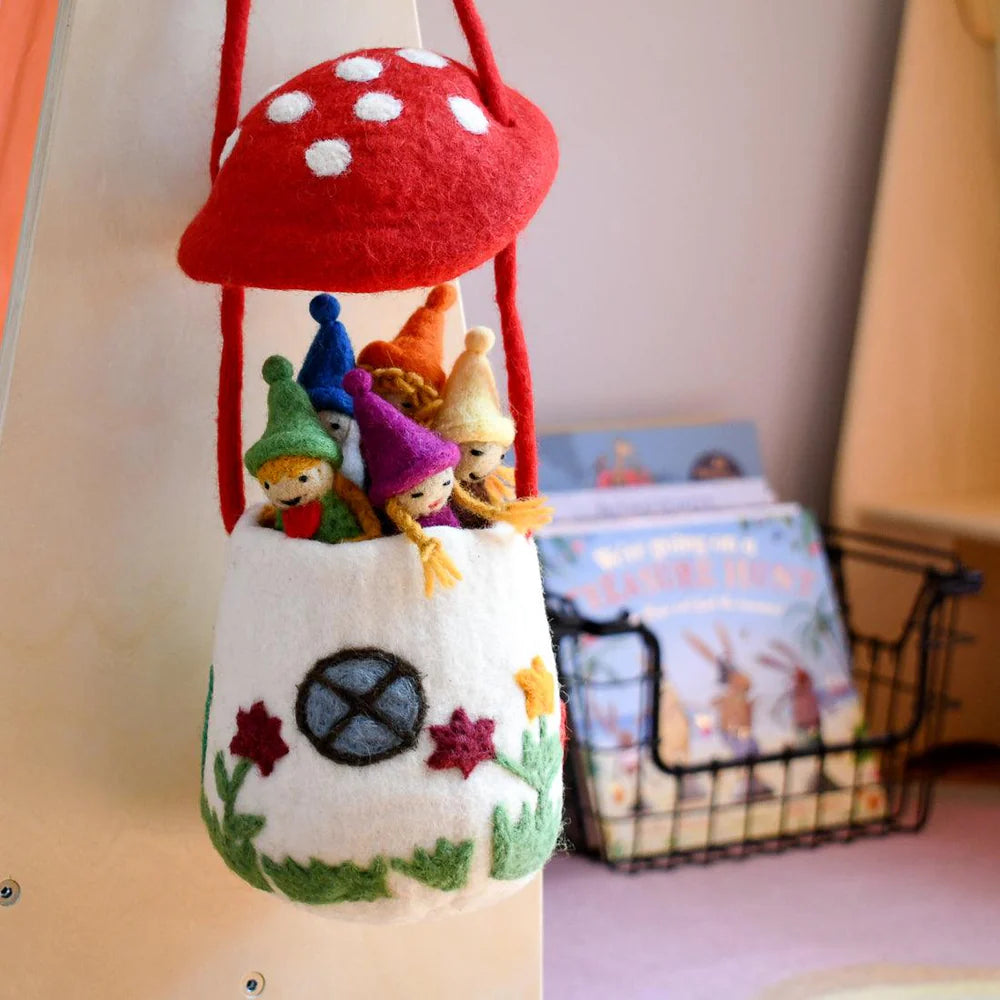This charming felt mushroom bag invites little ones to explore their enveloping play, letting them lift the lid and fill it with their favourite tiny treasures. With an adjustable handle, it’s perfect for carrying by hand or slinging over the shoulder, making playtime on the go easy and fun.